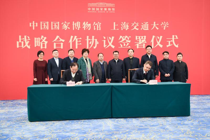 顾锋、陈成军代表双方签署“中国国家博物馆与上海交通大学战略合作协议”。