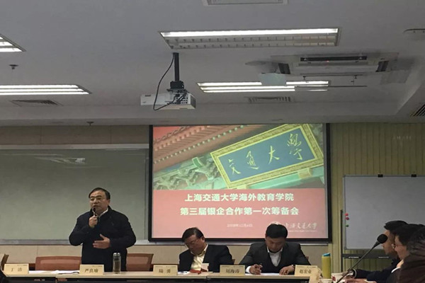 上海交通大学母基金2019管理年会举行12月4日下午,由上海交通大学海外教育学院发起的第三届银企合作第一次筹备会在上海交通大学徐汇校区成功举办。上海交通大学总经济师、海外教育学院院长刘牧群到会并讲话,上海交通大学海外教育学院理事长严良瑜,校友联谊会陆勇、刘龙娣、洪善银、乔斌、刘海涛等7家校友联谊会的十多位校友代表参会,中国工商银行、中国建设银行、中国民生银行、上海银行、上海农商行、渣打银行等6家银行代表受邀出席。会议由海外教育学院校友事务总监丁洁主持。