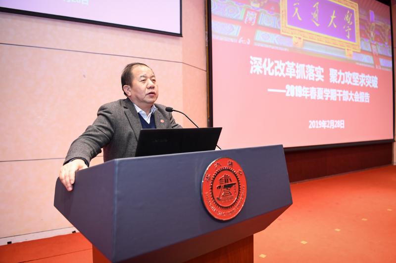 在随后的干部大会上,林忠钦以《深化改革抓落实·聚力攻坚求突破》为主题,代表校领导班子作学校工作报告。