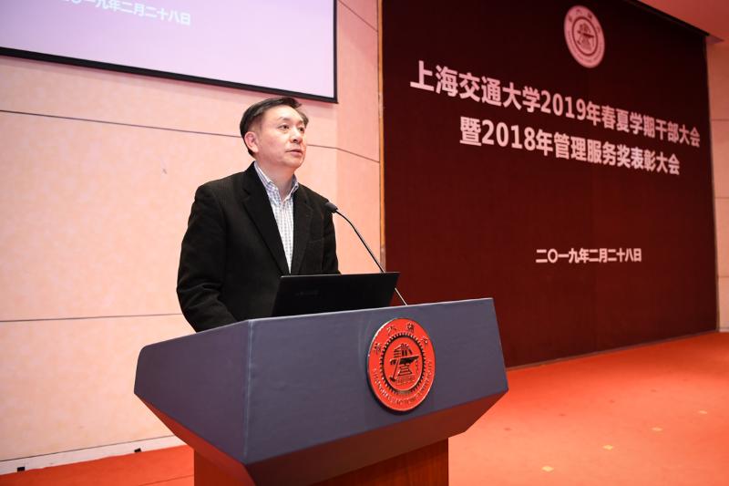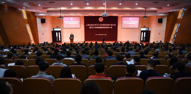 钱学森图书馆“选择——钱学森的初心与信仰”专题展览获颁国家级奖项2月28日下午,上海交大2019年春夏学期干部大会暨2018年管理服务奖表彰大会在闵行校区陈瑞球楼报告厅召开。全体校领导、二级单位党政负责人、教学和科研骨干代表、机关干部、民主党派负责人、基层党支部书记、思政教师、辅导员,以及2018年管理服务奖获奖人员等参加会议。校党委书记姜斯宪主持干部大会并讲话,校长、党委副书记林忠钦作学校工作报告;党委副书记顾锋主持管理服务奖表彰大会。