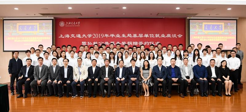 2020年上海交通大学第五届“全球高校海外教育展”举办5月16日下午,2019年毕业生赴基层单位就业座谈会暨弘毅公共服务奖捐赠签约仪式在闵行校区行政B楼418会议室举行。校长、党委副书记、中国工程院院士林忠钦,党委常委、副校长张安胜,成为资本管理合伙人、1994 届计算机科学系校友沙烨先生及夫人、1994 届计算机科学系校友蒋晓琳女士,吉林省委组织部干部队伍建设规划办公室主任方向春,湖南省委组织部干部队伍建设规划办公室副调研员张玉园及选调生校友代表受邀参加会议。党政办、组织部、学指委、研究生院、教务处、发展联络处、校友会等相关职能部门及院系领导、思政教师以及60余名即将赴基层单位就业的毕业生代表参加了本次座谈会,座谈会由党委常委、党委宣传部部长胡昊主持。