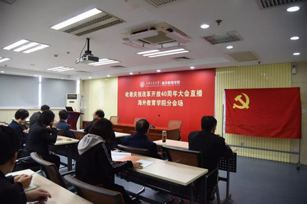 上海交通大学丁奎岭常务副校长一行来院调研2018年12月18日上午,海外教育学院党总支组织学院领导、全院党员、办学骨干集体收看“庆祝改革开放40周年大会”现场直播。