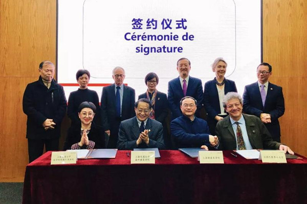 签约仪式由上海交通大学海外教育学院党委书记姚奕主持,上海交通大学总经济师、海外教育学院院长刘牧群,上海健康医学院校长黄钢,上海交通大学医学院附属仁济医院副院长王育以及法国巴黎第七大学医学院院长Philippe RUSZNIEWSKI分别代表合作各方致辞,并签署项目合作协议。致公党上海市委专职副主委、秘书长、上海交通大学原公共卫生学院院长马进等领导、嘉宾出席仪式,并见证了合作协议的签订。